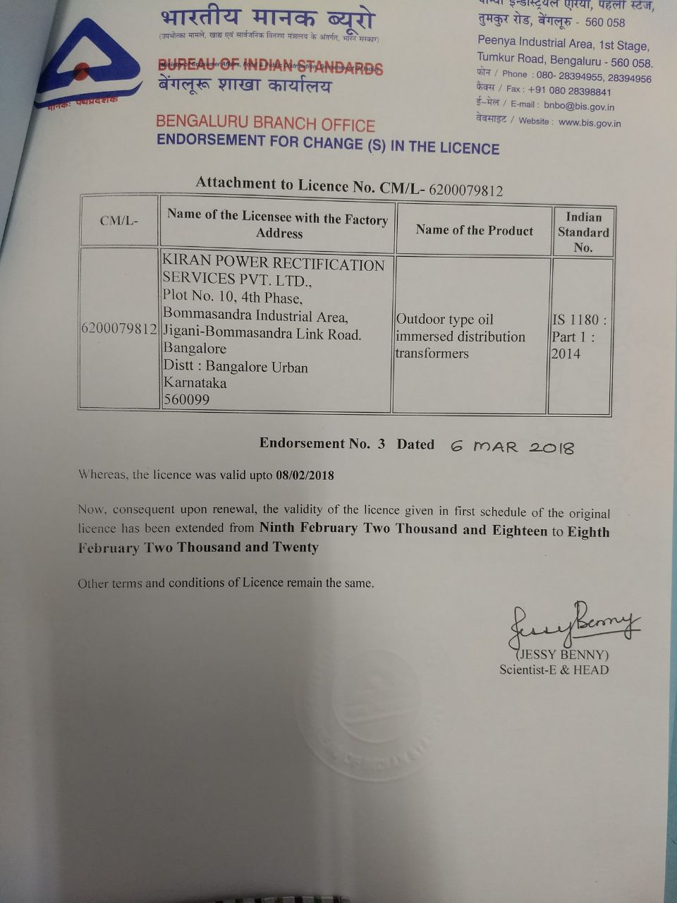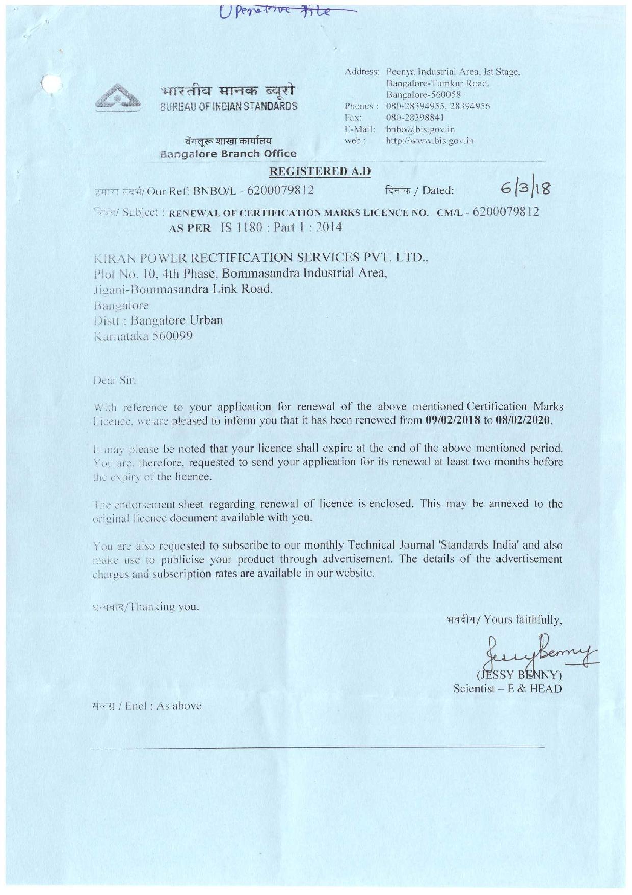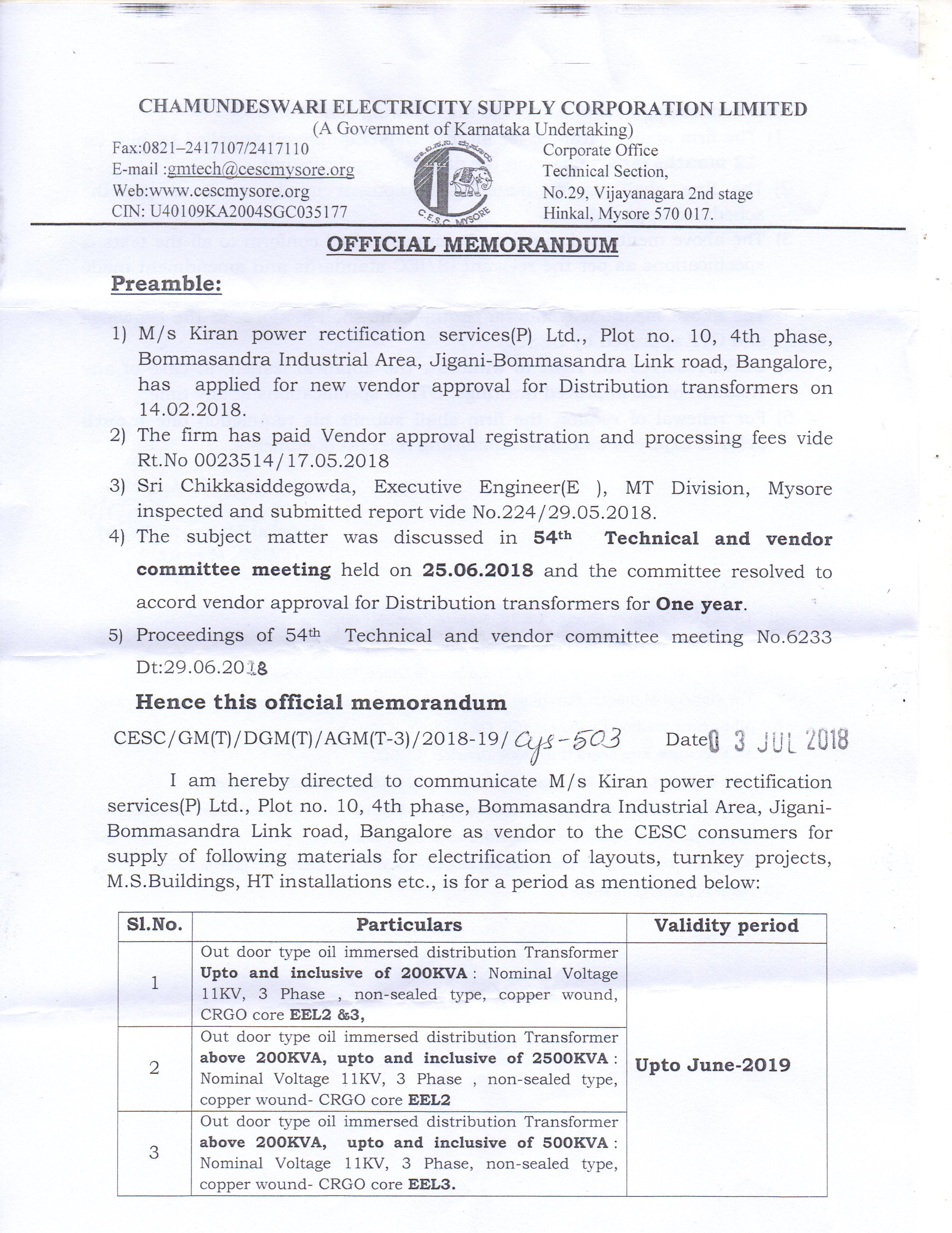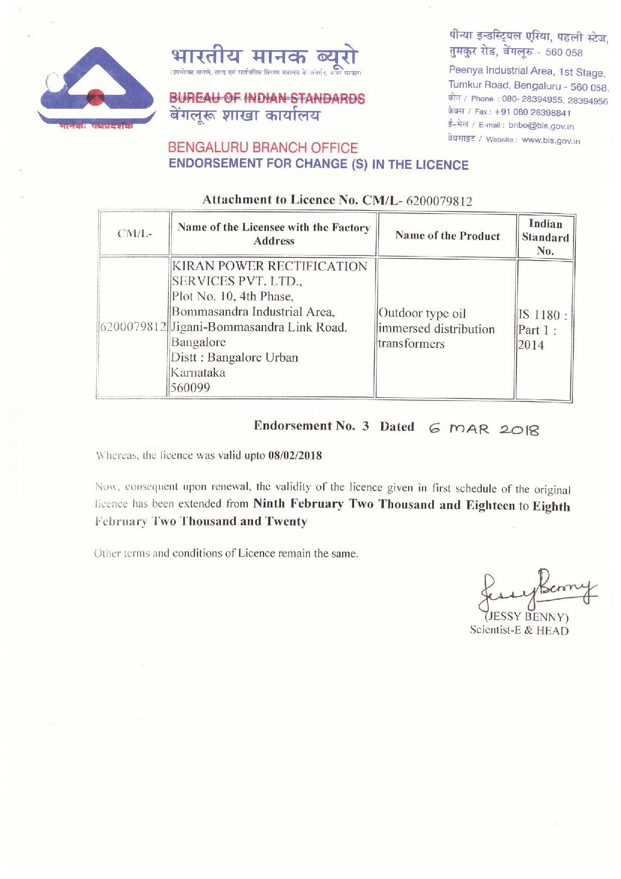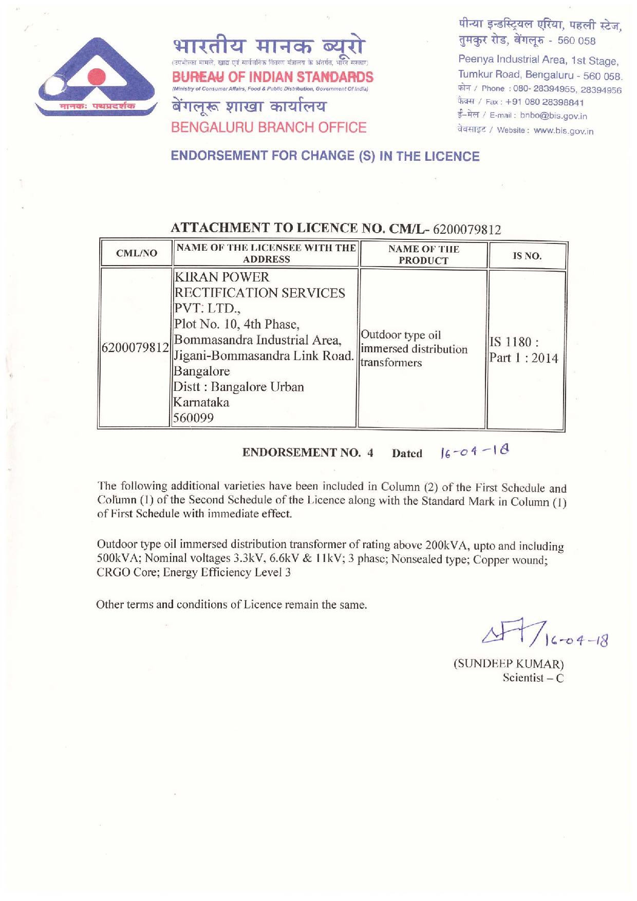 Kiran Power Rectification Services Pvt. Ltd. (KPRS) is offering ISI Licence, Star rating Transformers, certified by Bureau of Energy Efficiency, approved by BIS standards for utilities, industrial customers multi storage building and any other potential users.